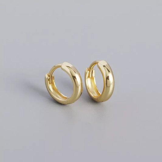 Sterling Silver Solid Classic Thick Hoop Huggie Clip Earrings 9MM