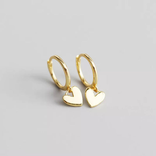 Sterling Silver Solid Heart Drop Dangle Hinged Hoop Earrings 1 PAIR